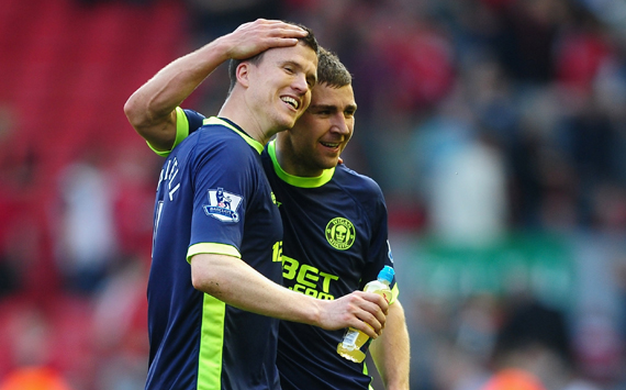 Gary Caldwell chipped the ball into the Liverpool box and Jamie Carragher’s back header fell between Skrtel and Moses and the Liverpool defender dangerously kicked the Nigerian international in the head. It was a clear penalty and Shaun Maloney competently fired his spot kick past Pepe Reina.