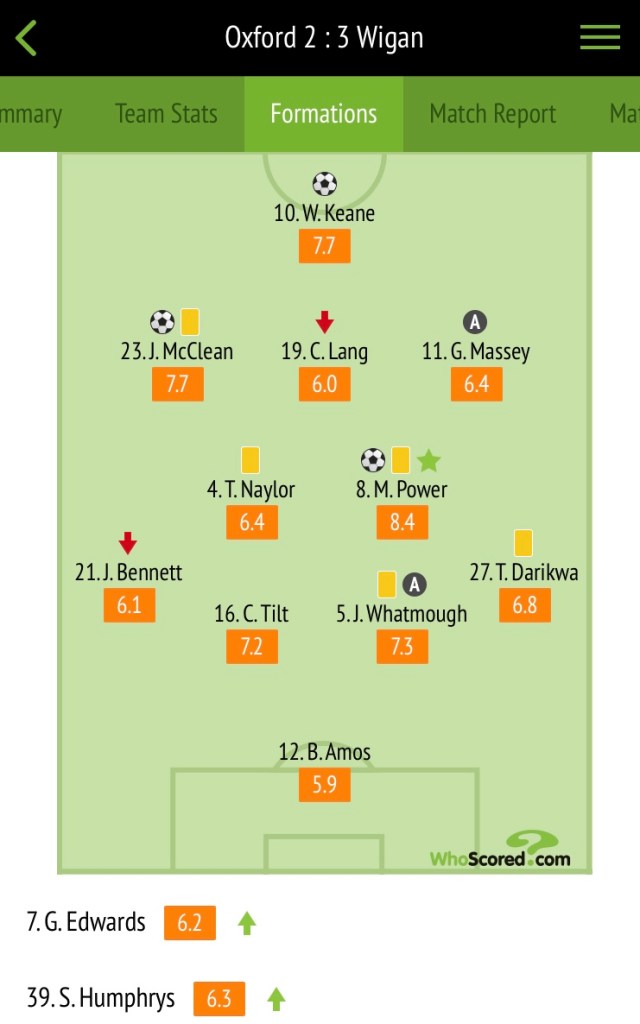 Latics should’ve been back in front when Keane found Massey in the centre of the penalty area, but the winger produced an air shot and failed to trouble Simon Eastwood in the Oxford goal.