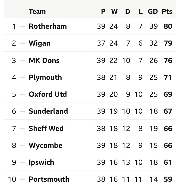 - Latics are now one point behind leaders Rotherham with two games in hand and are three points ahead of third place MK Dons with two games in hand. Morecambe are in 22nd place and are three points from safety.