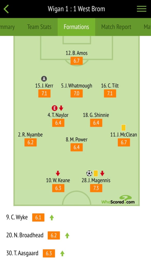 - Wigan Athletic bounced back from Saturday’s 5-1 defeat to Burnley with a creditable point at home to West Bromwich Albion.
