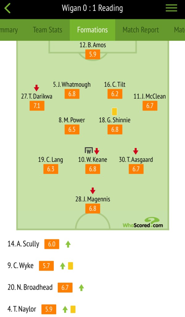 - Latics are now 12th in the Championship table and Reading move up to third.
