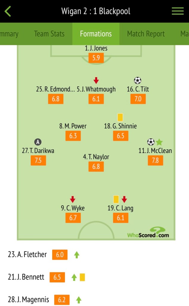 - It was a bittersweet afternoon at the DW Stadium as Wigan Athletic came from a goal down to defeat ten-man Blackpool.