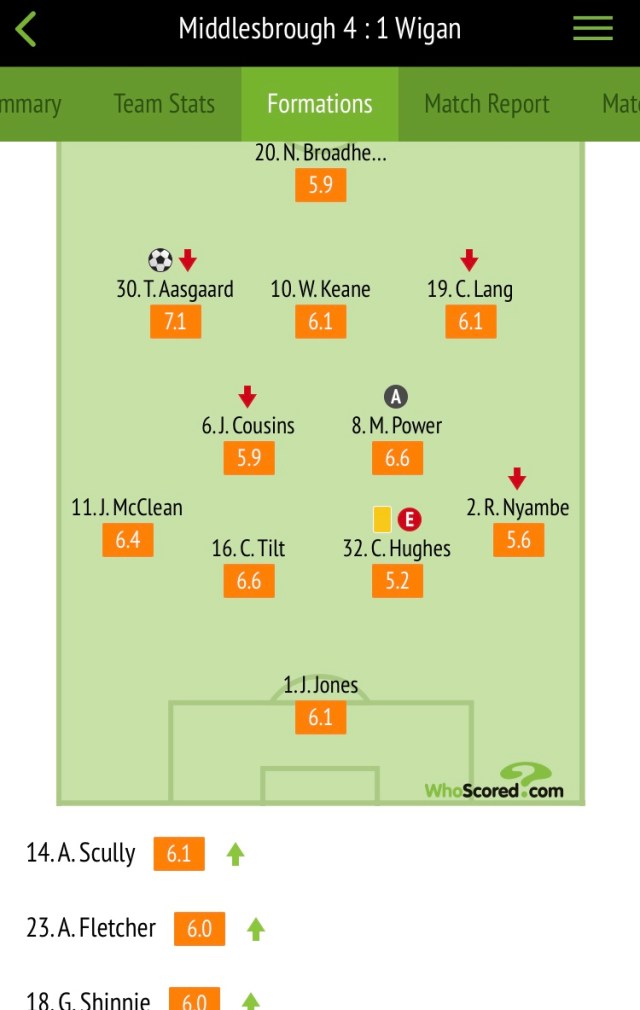 Graeme Shinnie replaced Broadhead on 69 minutes and Anthony Scully and Tendayi Darikwa replaced Aasgaard and Nyambe on 75 minutes. Tom Naylor and Ashley Fletcher replaced Cousins and Lang on 86 minutes.