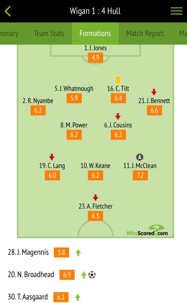 - Wigan Athletic suffered a fourth consecutive defeat as Hull City hit four and moved away from the drop zone.