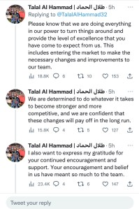 Chairman Talal Al Hammad issued a statement after the game apologising for the form and has promised to take action in the transfer window.
