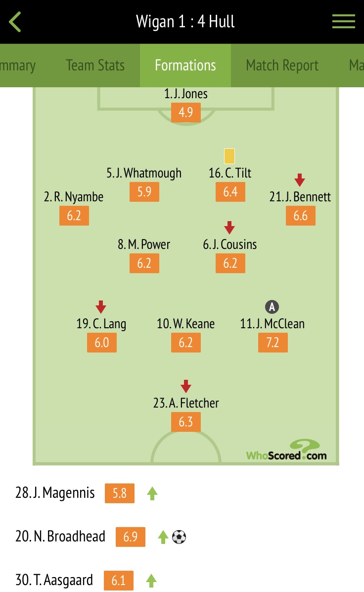 - The Tigers went ahead after 15 minutes after Jacob Greaves produced an excellent finish from a corner but Latics drew level on 63 minutes with a headed own goal from James McClean’s corner.