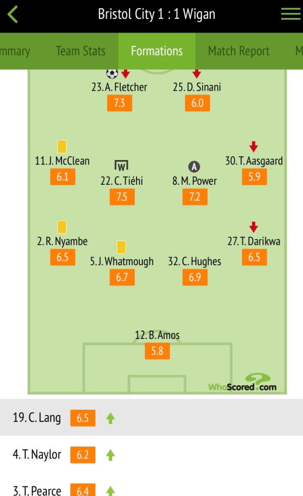 Latics responded and after a good move between Daniel Sinani and Fletcher the big striker found Tendayi Darikwa, but unfortunately his low cross was blocked.