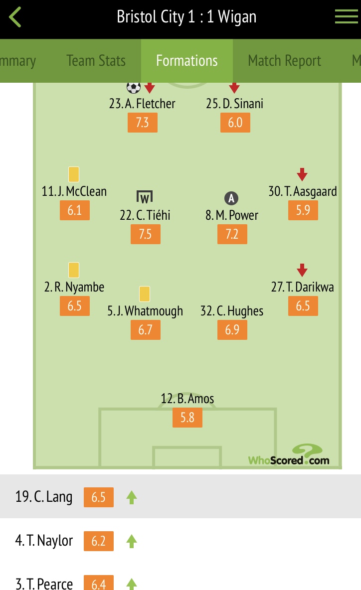 Latics responded and after a good move between Daniel Sinani and Fletcher the big striker found Tendayi Darikwa, but unfortunately his low cross was blocked.