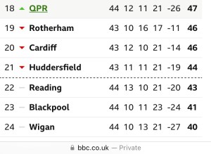 • Latics remain bottom of the table and are four points from safety with two games remaining. Millwall are now in seventh place.