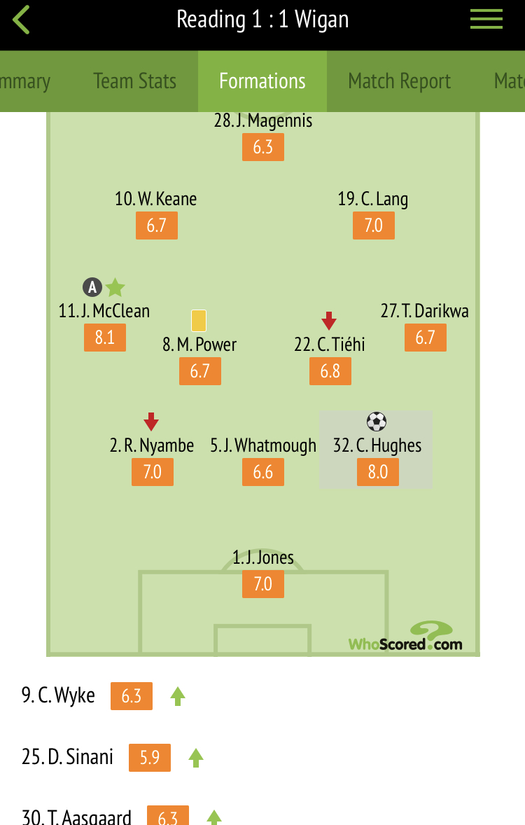 But on 81 minutes Latics made the breakthrough when Hughes headed home from the edge of the six-yard box following McClean’s superb deep cross. There was much jubilation amongst the travelling Tics fans.