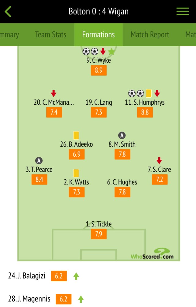Scott Smith and Liam Morrison replaced Callum McManaman and Humphrys on 67 minutes.
