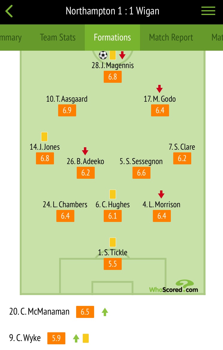 Jonny Smith and Charlie Wyke replaced Godo and Magennis on 71 minutes. Latics now had three wingers on the pitch to attack the hosts, with Smith, McManaman and Jones all pushed forward.