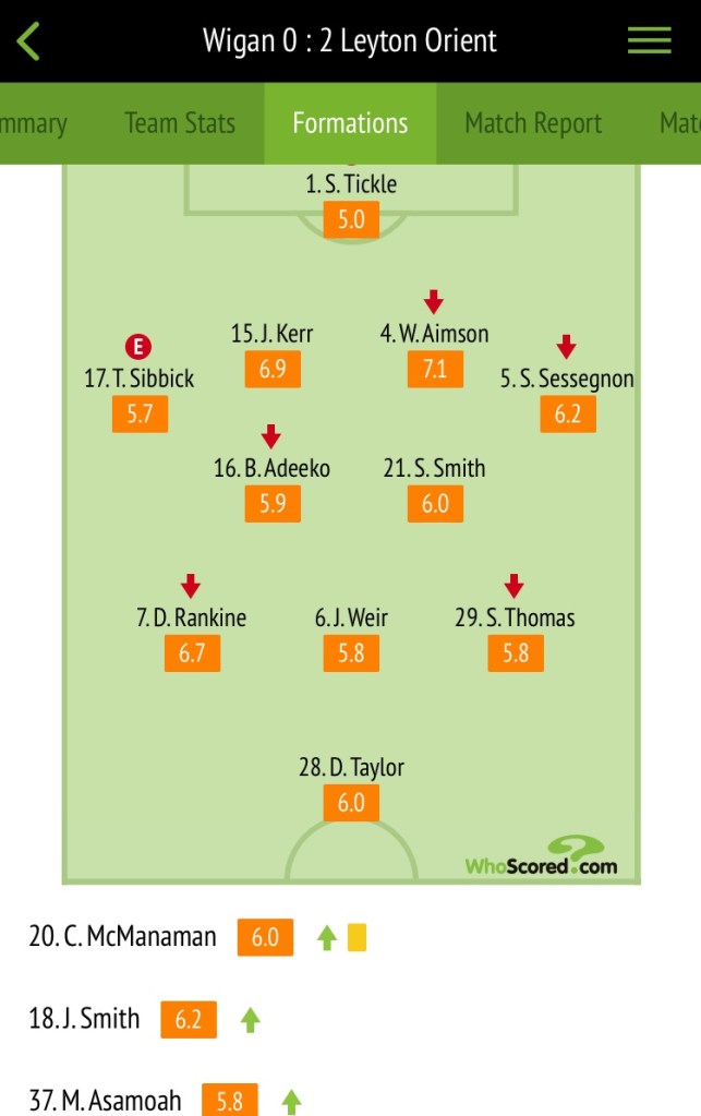 Latics went close when Sessegnon curled an effort towards goal from just inside the box. Goalkeeper Josh Keeley spilled the ball and Weir was denied a tap in by Sweeney at the back post.