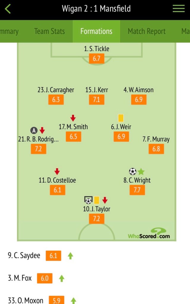 - Mansfield enjoyed plenty of possession but Latics who took the lead in the 25th minute. A superb through ball by Raphael found Callum Wright down the left and he cut inside before slotting past Anthony Nunez.